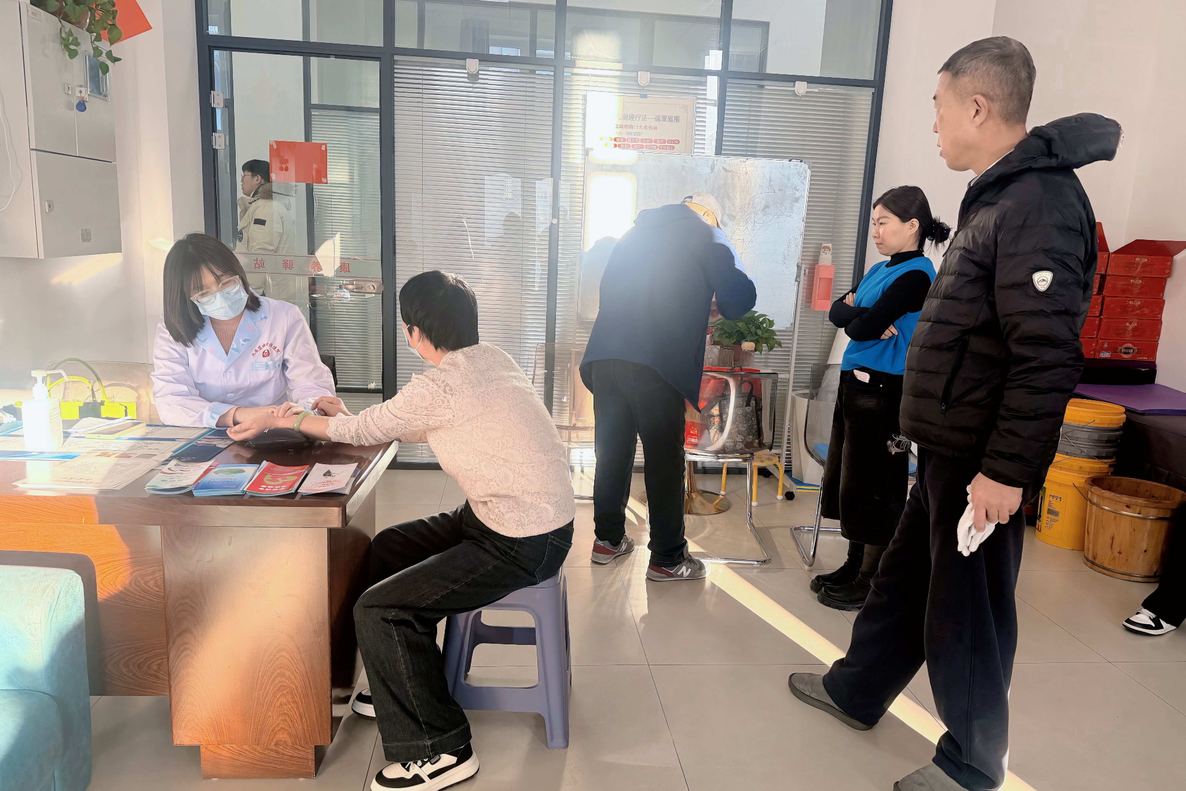 活动现场,中医科医生设立脉诊咨询台,为居民提供免费把脉、体质辨识和健康指导。医生耐心问询、细致诊脉,针对常见健康问题及慢病管理,提供个性化的中医调理方案和养生建议,帮助居民树立“未病先防”的健康理念。